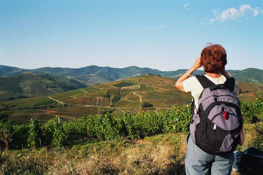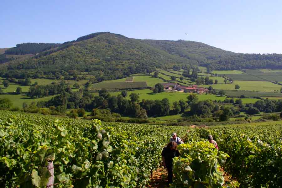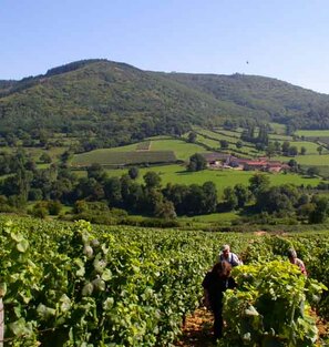 Cette journée vallonnée et très variée vous fera passer de l'étage des vignes à celui des forêts de feuillus, puis à celui des forêts de conifères. Le regard portera loin, jusqu'aux Alpes par temps clair ! La descente vous fera rejoindre les beaux vallons du vignoble et les villages dorés. En fin d'après-midi, rencontre conviviale avec un viticulteur qui vous fait découvrir son métier au fil de l'année. Dégustation des vins du Domaine accompagné d'un mâchon beaujolais.