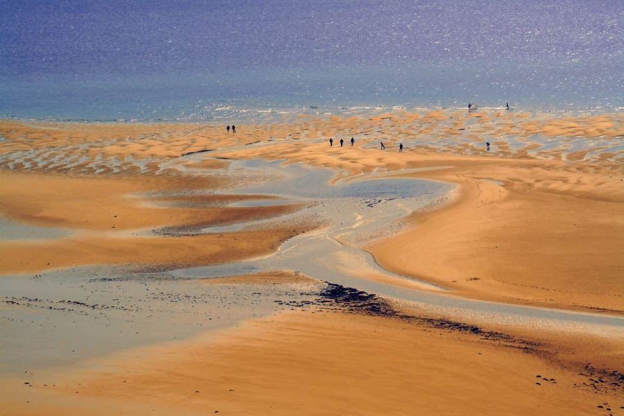 La côte rocheuse s'arrête à Saint-Vaast. Commencent les grandes plages de sable que l'itinéraire longe jusqu'à Quinévile. Après l'ancien fort, le sentier monte vers le bocage parsemé de hameaux ruraux. En milieu de journée, un rapide transfert en taxi est prévu pour rejoindre directement la batterie de Crisbecq. Aujourd'hui devenue musée, vous pourrez visiter ce site militaire d'envergure, ou celui un peu plus loin d'Azeville, consacré au débarquement de Normandie le 6 juin 1944. Puis le chemin vous conduit jusqu'au célèbre village de Sainte-Mère-Église. Lieu de tournage du film "Le jour le plus long", le para est toujours accroché au clocher... Sur le chemin,