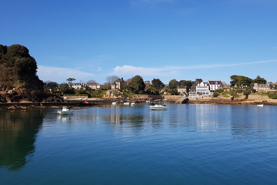 Le sentier côtier par l'estuaire du Trieux et Loguivy. Embarquement pour l'île de Bréhat à la Pointe de l'Arcouest (15 min de traversée bateau). Installation pour 2 nuits à Bréhat dans le Port Clos. (Attention, il n'y a pas de voiture sur l'île, pas de transfert de bagages possible entre le débarcadère et votre hébergement, celui-ci pouvant être entre 100 m et 800 m selon l'hébergement disponible).