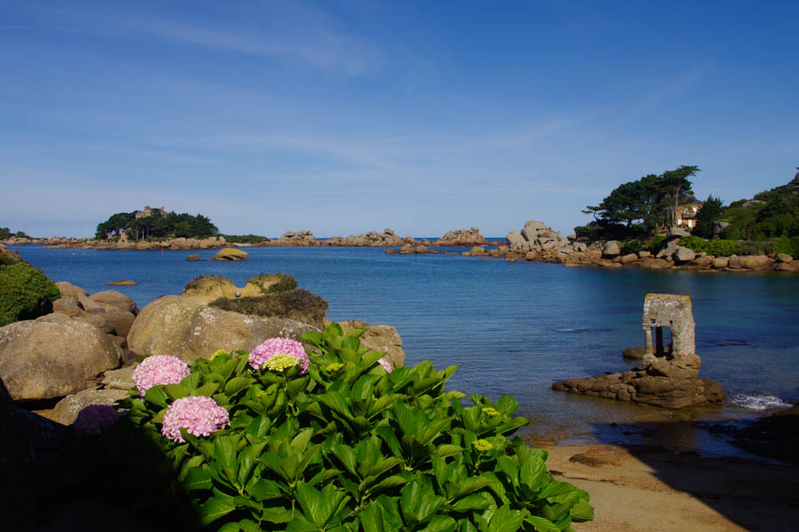 Départ de Port Blanc pour aller jusqu'à la Pointe du Château, imposante masse de granit rose haute de 25 m qui s'enfonce dans la mer. En fin d'étape, transfert pour Tréguier pour la nuit.