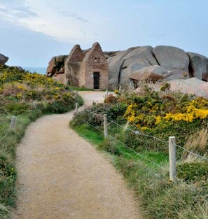 Randonnée côtière où la pierre est omniprésente dans le paysage. Passage vers Landrellec, vers Trégastel où la nature s'est surpassée pour laisser un paysage enchanteur et vers la presqu'île de Renote qui est classée parmi les sites les plus pittoresques de France. Étape à Ploumanac'h et découverte de ses rochers de granit rose aux formes aussi incroyables qu'irréelles.