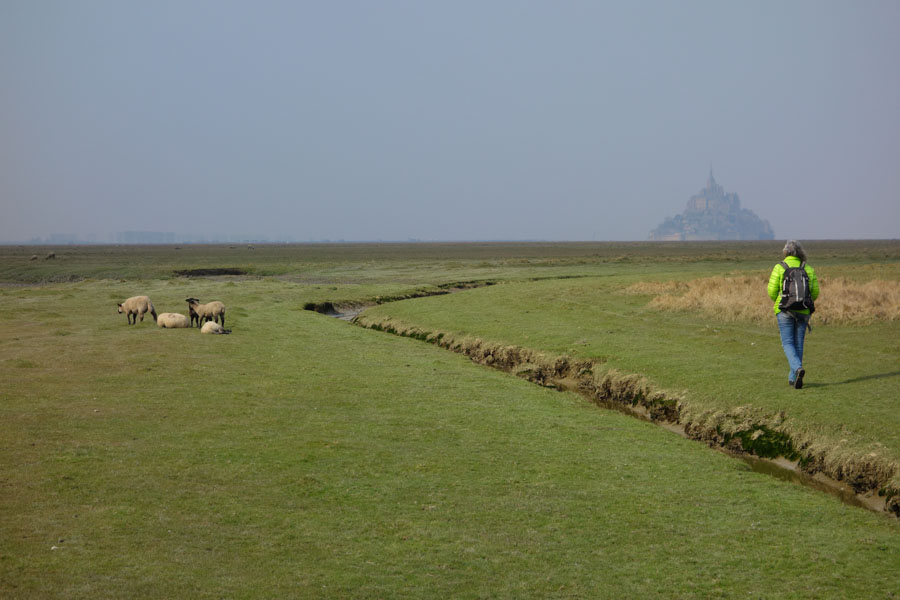 Ultime étape de votre périple sur le sentier des douaniers, le parcours chemine entre polders et herbus, ces grands prés salés aux plantes halophiles broutés par les moutons. Puis la dernière ligne droite vous mène au mythique Mont-Saint-Michel. Nuit extra muros.