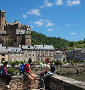 L'itinéraire du chemin de Saint-Jacques suit le cours de la rivière du Lot jusqu'au joli village médiéval d'Estaing qui, depuis le XIVème siècle, perpétue la tradition de la fête de Saint-Fleuret le premier dimanche de juillet. À cette occasion, une grande procession parcourt le bourg où 150 figurants en costumes ayant marqué l'histoire, dont celui des pèlerins de Saint-Jacques, y sont représentés. Découverte du château des Comtes d'Estaing organisé tout autour du village et de son pont gothique du XVIème siècle, classé patrimoine mondial par l'UNESCO.