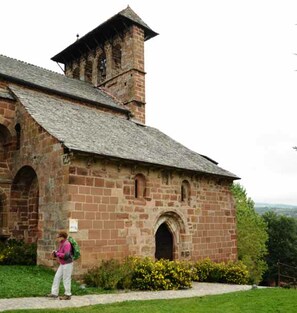 Courte étape pour rejoindre la bourgade de Sénergues située entre la vallée du Lot et Conques sur un éperon granitique. En chemin, à Espeyrac, la légende prétend qu'en 960, un pèlerin rendu aveugle suite à une agression, retrouva la vue en invoquant la patronne de Conques. Arrivée à Sénergues et découverte de son château édifié au XIVe siècle pour se défendre contre l'envahisseur anglais.