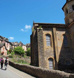Départ pour les collines environnantes d'où la vue sur le village de Conques est saisissante. En chemin, découverte de la chapelle Saint-Roch, autrefois lieu de pèlerinage. Ce saint est souvent vénéré par les jacquaires car il est représenté en pèlerin avec le bourdon et la coquille.