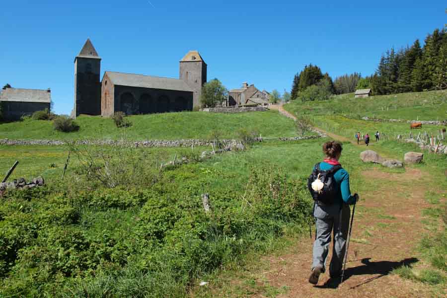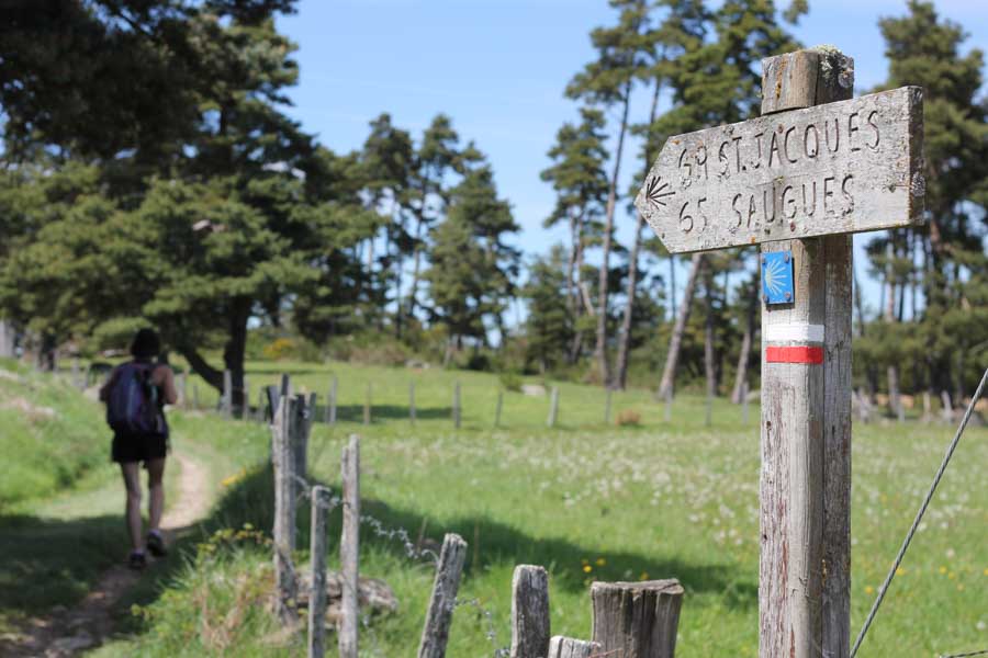 Montée par le plateau de la Margeride à Saugues qui constitue la seule difficulté de ce tronçon du chemin de Saint-Jacques. Entrée en terre granitique avec le changement des paysages et de l'architecture des maisons. Arrivée à Saugues et accueil en demi-pension. Découverte de sa tour des « Anglais », un donjon carré datant du XIIIème siècle et de sa collégiale Saint-Médard, édifice de style gothique.