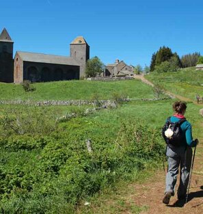 Le sentier de Grande Randonnée descend dans la vallée de la Truyère, remonte sur la vaste plaine de la Margeride puis atteint Aumont-Aubrac. En chemin, découverte de l'église romane des Estrets, ancien prieuré bénédictin remanié à diverses époques, surmontée d'un clocher-mur à trois baies supportant un petit clocheton.