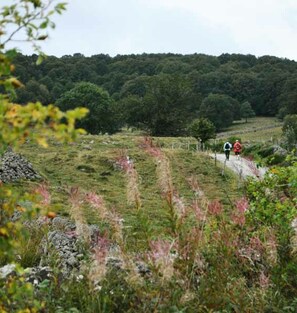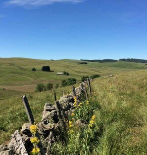 Traversée du plateau de la Margeride qui offre de vastes espaces herbagers où dominent les landes à genêts, à bruyères et à myrtilles, entrecoupées parfois d'une savane de fougères géantes. Découverte de la tour de la Clauze édifiée au XIIIème siècle et perchée sur un bloc de granit.