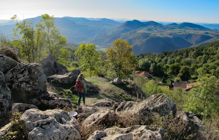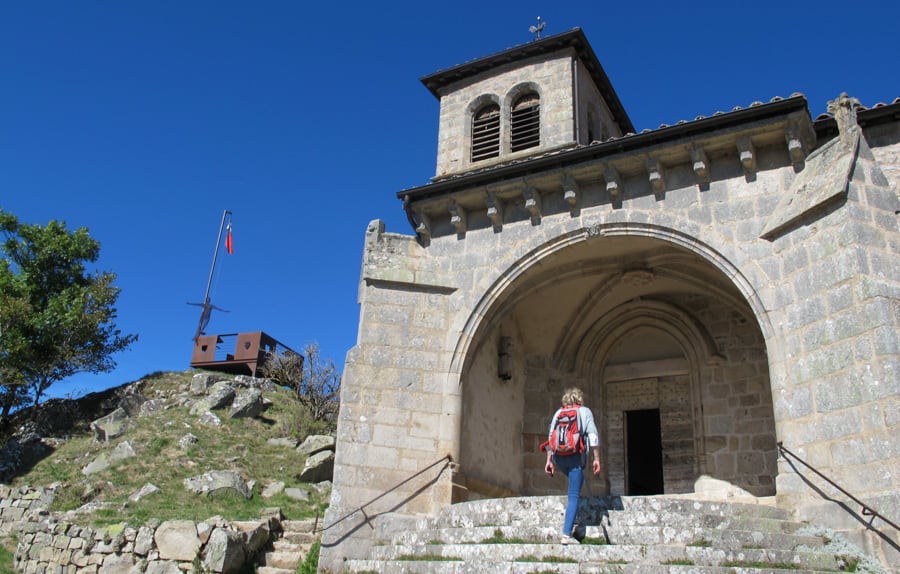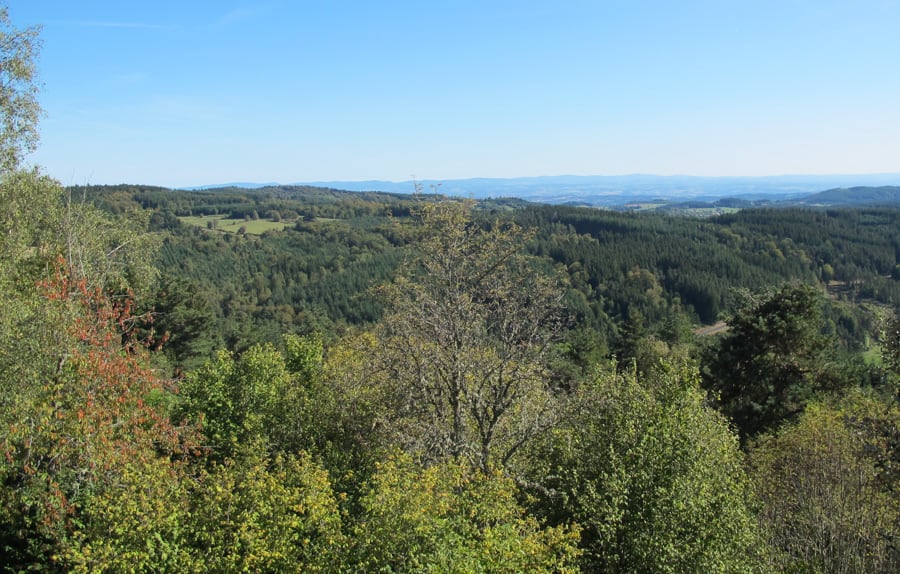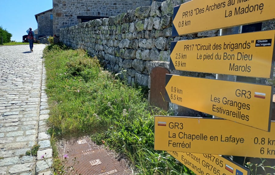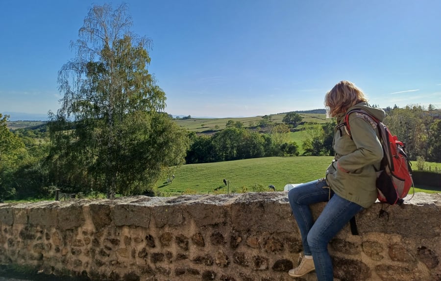 Depuis ces hauts plateaux, la vue par beau temps porte vers les monts du Velay et du Vivarais, vers le Parc naturel du Pilat et même jusqu'aux sommets enneigés des Alpes. En chemin, on change de département, de la Loire à la Haute-Loire, et de paysages. À Retournac, la Loire, ruban de vif-argent se taillant un chemin entre les volcans, nous sert de guide jusqu'à notre destination finale : Le Puy-en-Velay.