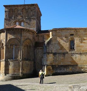 Vous commencerez cette dernière étape dans un décor vallonné. Après une partie moins passionnante longeant de près une importante usine, vous serez récompensé par votre arrivée à Santillana del Mar. Visite du village, décrit par Jean-Paul Sartre comme étant le « plus beau d'Espagne ». Découverte de sa collégiale romane, son cloître, ses ruelles pavées, ... Tant de choses à voir dans ce si petit village ! S'il vous reste un peu de temps, les grottes d'Altamira qui renferment des chefs d'œuvre de l'art préhistorique, valent un petit détour (à environ 5 km de Santillana del Mar).