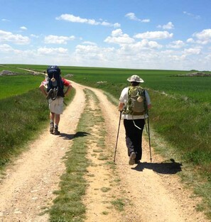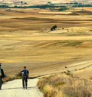 Transfert jusqu'à Rabé de las Calzadas, où vous reprendrez le chemin. Passage par le village d'Hornillos del Camino qui constituait autrefois une étape importante avant la traversée de la meseta, vaste plateau entouré de montagne. À partir d'Hontenas, le décor sera plus verdoyant avec la vallée du Garbanzuelo (petit pois chiche en castillan). Couronné par les ruines d'un ancien château fort et au pied d'une colline, vous apercevrez le village de Castrojeriz de loin.