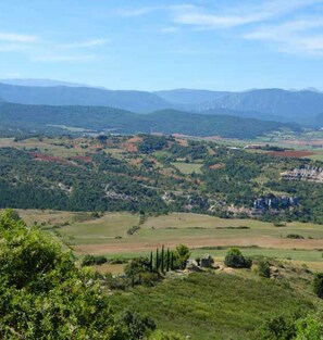 Montée de l'itinéraire vers le massif du Fourcat, traversée de la forêt domaniale de Pradière, puis cheminement le plus souvent en crête, offrant de jolis panoramas sur le Pays d'Olmes jusqu'à Roquefixade et son château en ruine.