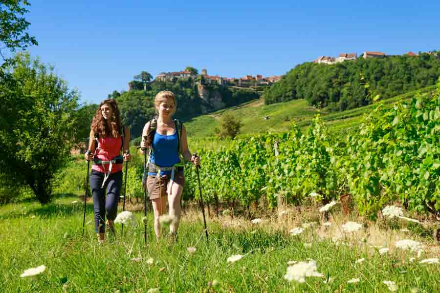 À partir de Salins-les-Bains et jusqu'à Lons-le-Saunier, vous êtes dans le Vignoble du Jura et les montées et descentes s'enchaînent. Elles sont courtes (2 à 3 km) mais raides (350 m de dénivelé chacune, en moyenne) et s'enchaînent régulièrement et souvent plusieurs fois dans la journée.