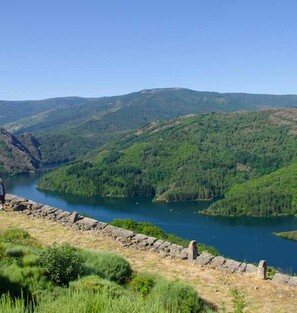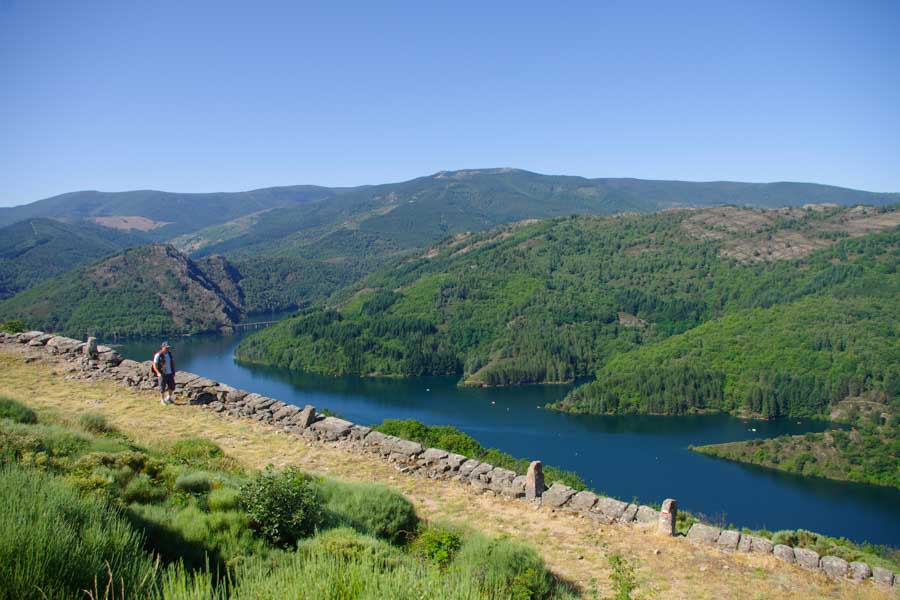 Il faut remonter le fond de vallée pour rejoindre le bassin versant méditerranéen. Le parcours emmène sur les crêtes, où mégalithes et ornières de chariots de commerce sculptées dans la roche cohabitent. En route pour la Garde Guérin, village médiéval emblématique de la Régordane, où l'itinéraire offre tout le long de beaux panoramas sur le massif du Mont Lozère, et les gorges du Chassezac. C'est l'un des plus impressionnants canyons de la région. Redescente en direction de Villefort et de son lac.