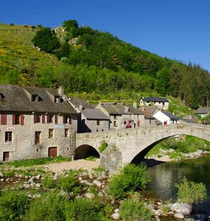 Nouvelle journée, nouvelle rivière : traversée des eaux claires du Tarn pour monter sur la Montagne du Bougès. Nous sommes ici en pays "camisard" ou pays protestant et c'est d'ailleurs au Pont-de-Montvert que la guerre éclata. Cette belle journée s'achève à Florac, à la confluence du Tarn et du Tarnon.