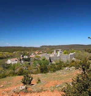 Après les riches cultures du vallon de la Dourbie, vous retrouverez la flore si caractéristique du Causse : longs cheveux de la stippe pennée, orchidées ou cardabelle, fleur symbole du Causse. Visite de La Couvertoirade, superbe village templier à l'enceinte intacte classé parmi « les plus beaux villages de France ». Etape à La Couvertoirade ou Le Caylar selon disponibilité.