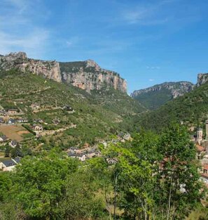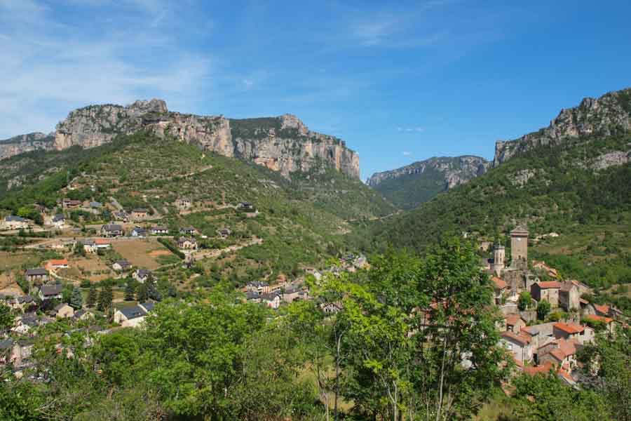 Toujours en rive gauche du Tarn vers le village perché de Montbrun dominant la rivière. Le site de Castelbouc et sa légende... Prades et son château en face, puis arrivée à Sainte-Enimie, LE village des gorges du Tarn, sa source miraculeuse et là encore une légende, et un très beau village.
