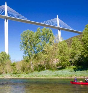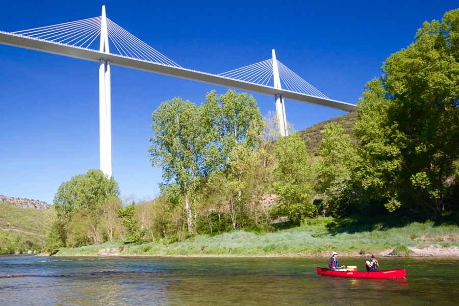 Arrivée à Millau dans une ambiance de vergers de cerisiers, la ville est surplombée par le fameux viaduc ! Millau est aussi la capitale du gant...