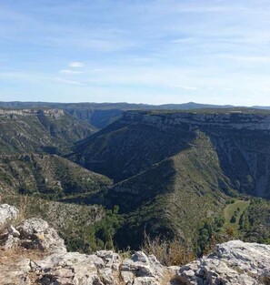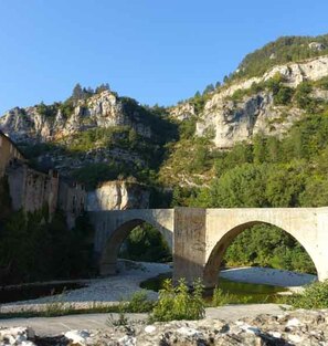 Possibilité de découvrir le site exceptionnel de Nîmes-le-Vieux qui offre un relief constitué de rochers dolomitiques ruiniformes aux formes étranges. Accès à Nîmes-le-Vieux par le Hameau de l'Hom, ajouter 9 kms à la randonnée du jour. En fin d'étape, descente dans les gorges de la Jonte à Meyrueis.